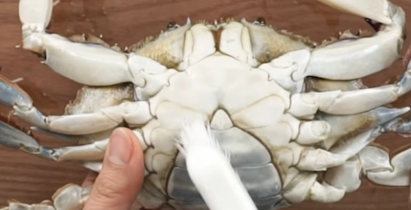 내장을 제거하지 않고 통째로 찌는 것이 일반적이지만, 꽃게 찌는 방법을 섬세하게 적용하려면 비린내를 줄이기 위해 간단히 제거해도 좋습니다.